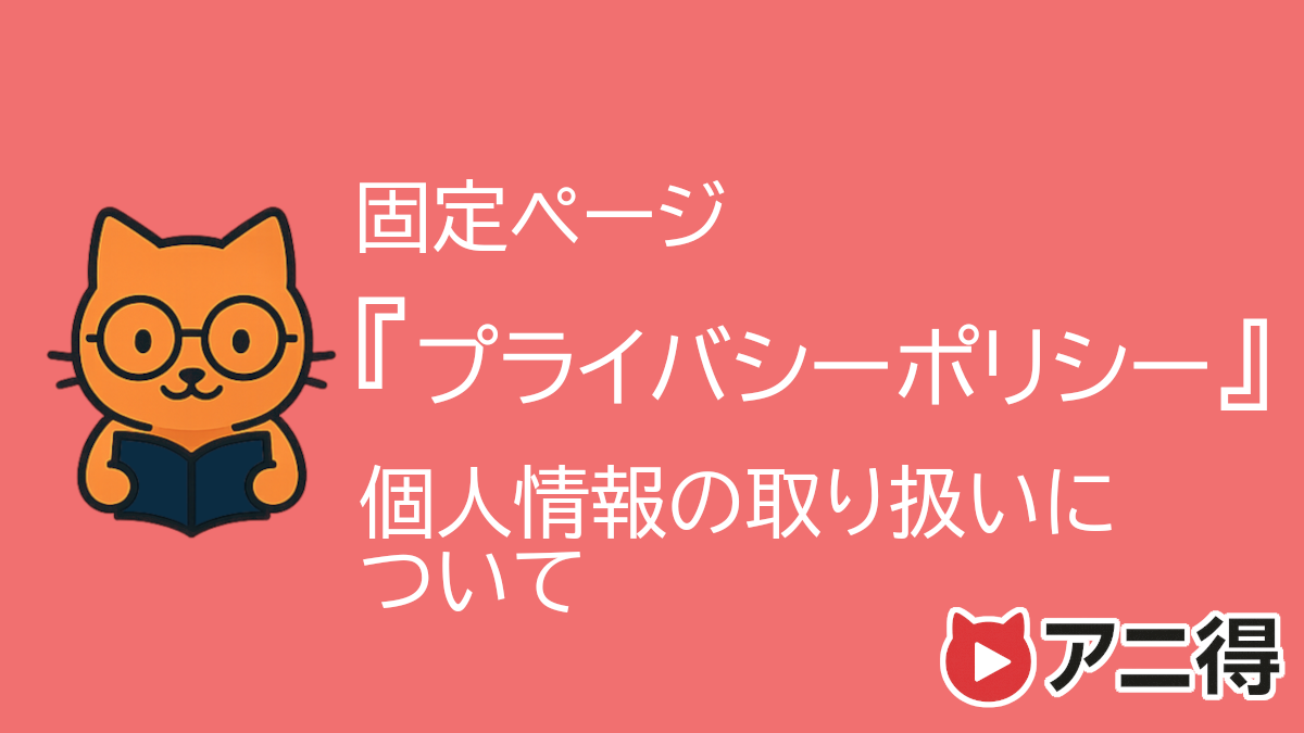 アニ得ガイド(https://anitokuguide.com、以下「当サイト」)では、ユーザーの個人情報を適切に管理し、安心してご利用いただけるよう、以下の通りプライバシーポリシーを定めます。